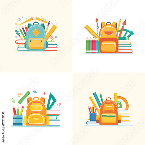 Иллюстрация дизайна векторного плоского стиля ремонтных работ. Молоток, топор, отвертка, банки с краской, линейка, перчатки, нож. Набор ручных инструментов для домашнего ремонта веб-баннера, страницы веб-сайта и т.д.