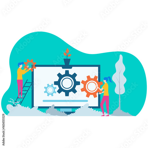 Восстановите векторный шаблон веб-сайта, дизайн веб-страницы и целевой страницы для разработки веб-сайтов и мобильных сайтов. Концепция услуг по установке, обслуживанию, восстановлению и диагностике компьютеров.