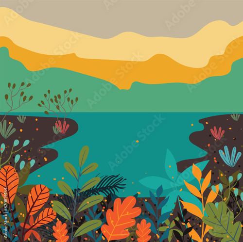 Спасательный вертолет тушит сцену дикого лесного пожара. Предотвращение ущерба лесному ландшафту, остановка пылающего пламени с помощью воздушного судна, сбрасывающего воду из ведра на горящие деревья векторная иллюстрация