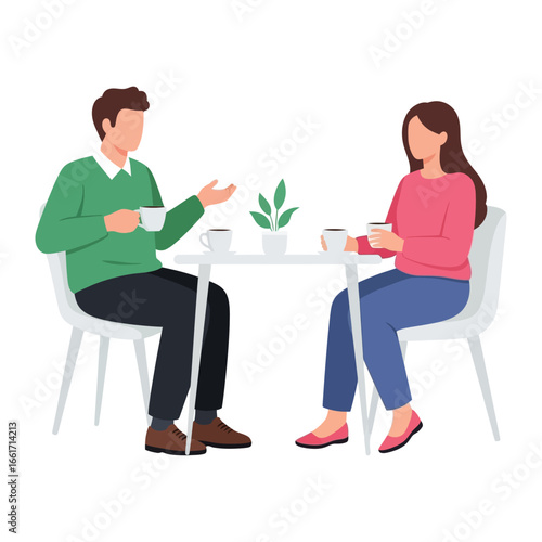 Официант ресторана дает меню женщине, сидящей за столом с чашкой кофе, векторная плоская иллюстрация, изолированная на белом фоне. Ресторанный кейтеринговый бизнес.