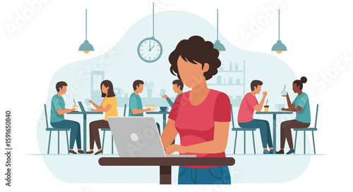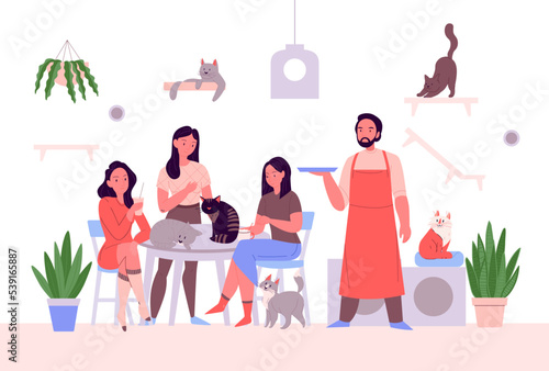 Набор сцен ресторана, векторная иллюстрация дизайна в плоском стиле. Повара готовят на кухне, официантка обслуживает посетителей, люди за барной стойкой. Концепция общественного питания в ресторане для плаката, баннера и т.д.