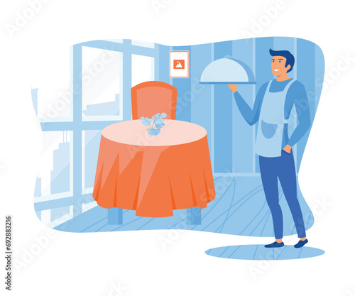 Векторная иллюстрация счастливой пары, сидящей за столом ресторана со свечами. Мужчина, делающий предложение даме и представляющий обручальное кольцо, элемент дизайна в плоском стиле, изолированный на белом фоне.