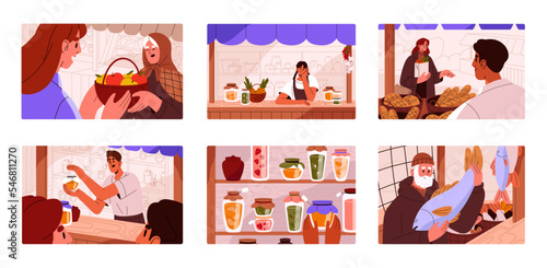 Кухня ресторана с шеф-поваром, готовящим блюдо на ужин. Набор векторных плакатов. Интерьер ресторана, приготовление пищи, макаронных изделий и кухонной утвари. Обслуживание профессиональным шеф-поваром.