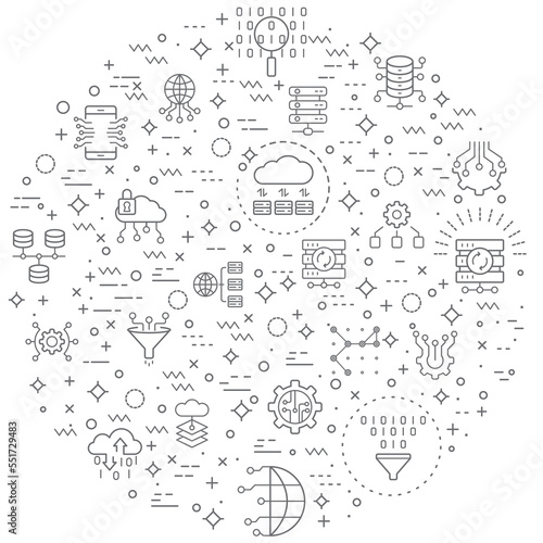 Векторная иллюстрация концепции рекламы ресторанного обслуживания. Современный элемент дизайна в плоском стиле thin line art с символами шеф-повара, еды, посуды, значками для баннеров веб-сайтов и печатных материалов.