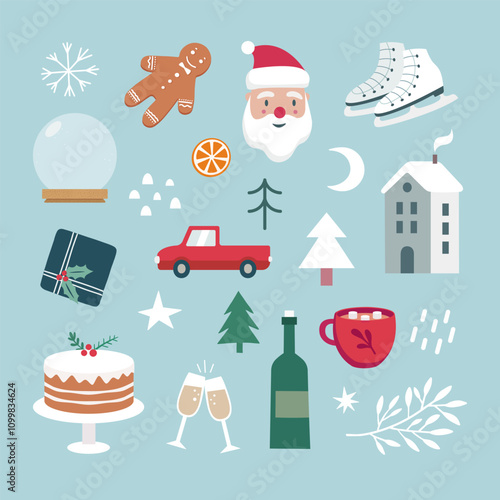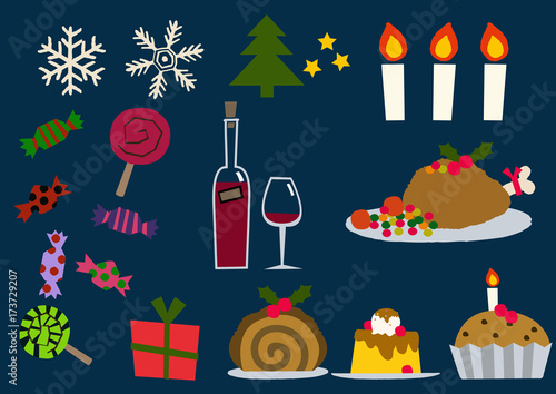 Векторная иллюстрация дизайна плоского стиля шляпы шеф-повара, свечей, бокалов для вина, бутылки вина, посуды, блокнота с ручкой, фруктов. Концепция обслуживания кафе или ресторана для веб-баннера, страницы веб-сайта и т.д.
