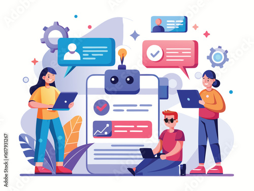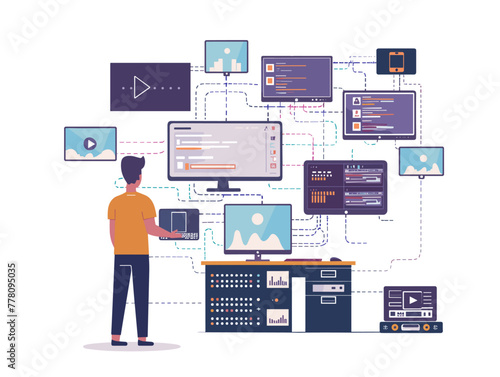 Векторная плоская иллюстрация крошечных людей, больших картонных коробок на полках, молодой женщины с корзиной для покупок. Розничная торговля, интернет-магазины, концепция электронной коммерции для веб-баннера, страницы веб-сайта и т.д.
