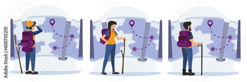 Дизайн целевой страницы образа жизни пенсионера, набор шаблонов баннеров веб-сайта, плоская векторная иллюстрация. Пожилые люди читают газету, занимаются скандинавской ходьбой в городском парке. Счастливая и активная пенсия.