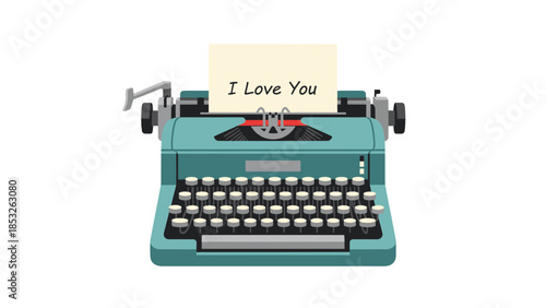 Ретро-пишущая машинка с белым листом бумаги. Векторная 3d-модель.