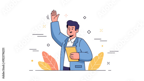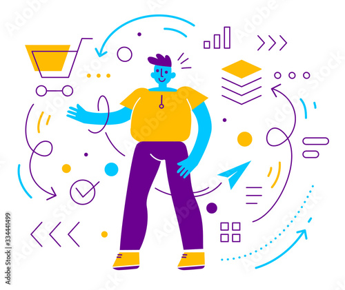 Богатый человек, держащий цилиндрическую шляпу, полную наличных денег, плоская векторная иллюстрация. Человек с состоянием. Счастливый и состоятельный человек, успешный бизнесмен, долларовый миллионер.