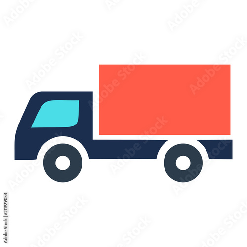 Загрузка спелых помидоров в грузовик доставки векторная иконка, изолированная на белом фоне