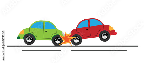 Дорожно-транспортное происшествие на шоссе с велосипедистом и водителем автомобиля векторная иллюстрация. Столкновение автомобиля с велосипедом на пешеходном переходе