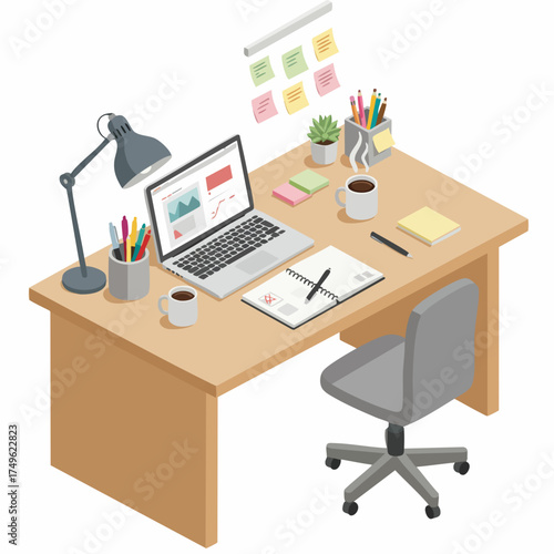 Значок робота. Робот-аналитик, сидящий за столом, вектор. Гуманоид, представляющий статистический отчет в виде диаграммы. Обработка данных с помощью искусственного интеллекта