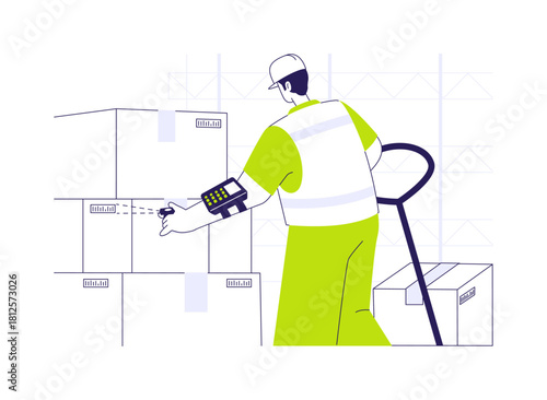 Робот-ассистент, помогающий человеку подстригать газон векторная иллюстрация. Роботизированное ведение домашнего хозяйства. Футуристическая технология и концепция автоматизации процессов домашней работы