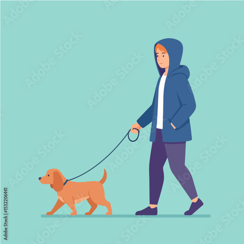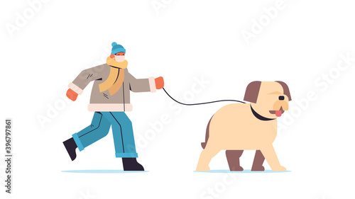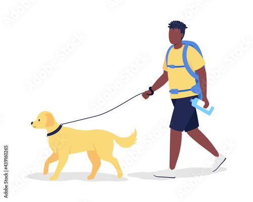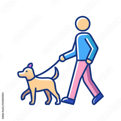 Робот-ассистент, выгуливающий собаку, векторный плоский значок, изолированный на белом фоне. Иллюстрация роботизированной машины с искусственным интеллектом, выполняющей ежедневные рутинные обязанности. Концепция футуристической технологии искусственного интеллекта