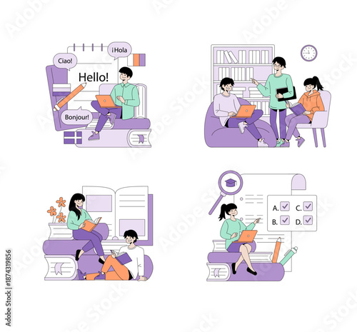 Набор векторных сцен робототехники и программирования. Идея искусственного интеллекта и футуристических технологий. Женщина, работающая над разработкой программного обеспечения для роботов