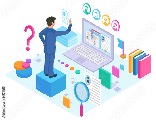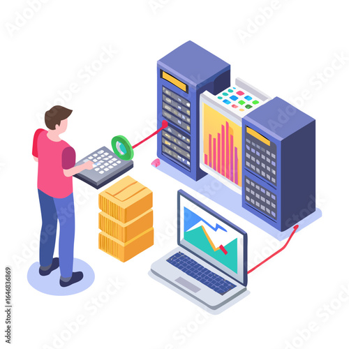 Робот-машина, выполняющая работу намного быстрее, чем человек, плоская векторная изометрическая иллюстрация. Превосходство роботов, лучшее качество и производительность. Автоматизация. Искусственный интеллект против человеческого интеллекта.