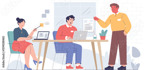 Робот, занявший первое место и празднующий победу, стоя на пьедестале победителя с кубком-трофеем, плоская векторная иллюстрация. Робот-машина выигрывает соревнование. Концепция искусственного интеллекта.
