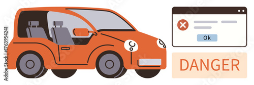 Робот, работающий на конвейере, создает векторную иконку автомобиля, выделенную на белом фоне. Автоматизация промышленных предприятий