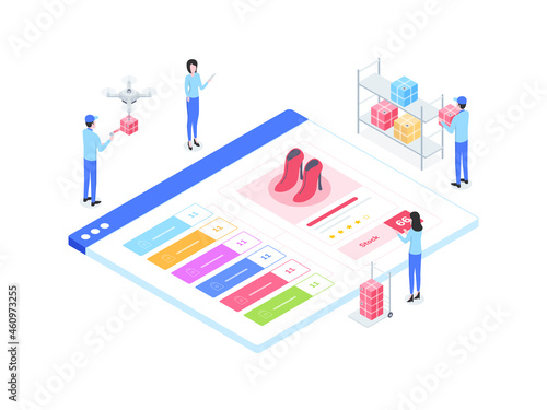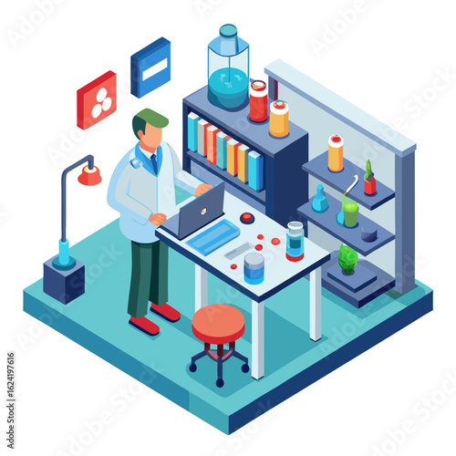 Робот, работающий в теплице, плоская векторная изометрическая иллюстрация. Автоматизированная теплица с роботизированной рукой. Интеллектуальная робототехника для тепличного садоводства. Умная сельскохозяйственная промышленность.