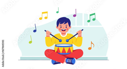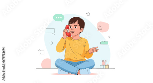 Школа робототехники. Милый мальчик, будущий инженер, строящий робота, плоская векторная иллюстрация. Детская робототехника.