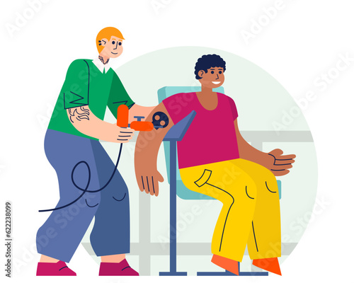 Школа робототехники. Милые дети, мальчик и девочка, строят робота, играют с игрушечными роботами, плоская векторная иллюстрация. Детская робототехника.
