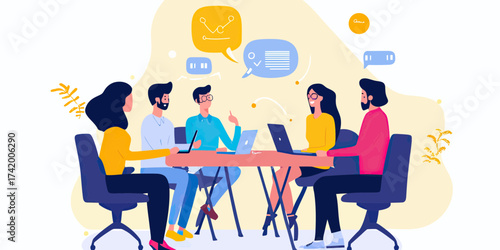 Роботы, работающие на компьютерах, выполняющих определенные задачи, плоская векторная иллюстрация. Технология программного обеспечения AI и rpa. Искусственный интеллект и роботизированная автоматизация процессов.