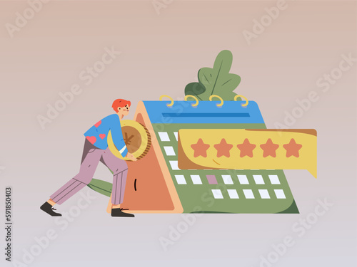 Шаблон векторного веб-баннера летних каникул. Счастливая девушка, наслаждающаяся катанием на роликах по набережной пляжа, иллюстрация дизайна в стиле ретро. Летний пляжный отдых, катание на роликах - ты это заслужил.