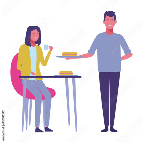 Вектор романтического ужина. Мужчина-женщина в кафе. Люди в ресторане, выделенные на белом фоне