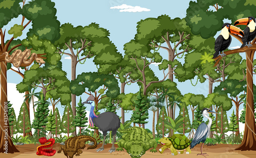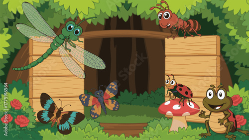 Плоская векторная иллюстрация парка веревочных приключений. Счастливые взрослые люди и дети, лазающие по деревьям, преодолевающие препятствия, наслаждаются экстремальным отдыхом на свежем воздухе