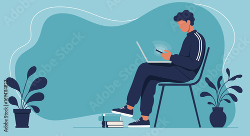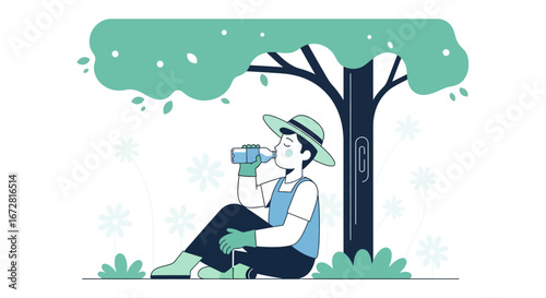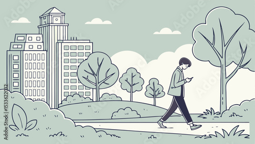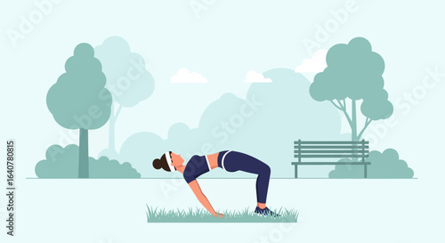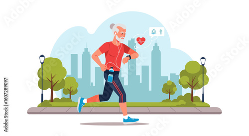 Спортсмен, бегающий трусцой в парке, векторная иллюстрация дизайна в плоском стиле. Мультяшный персонаж-марафонец, бегущий по городскому парку. Спорт, здоровый образ жизни, концепция марафонского забега.