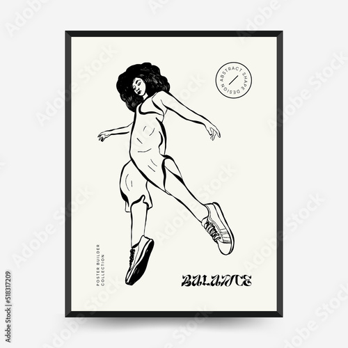 Никогда не останавливайтесь на концептуальном векторном шаблоне плаката-баннера. Силуэт бегущей девушки, низкополигональная каркасная сетка. Иллюстрация в стиле полигонального искусства со связанными точками, линиями, фигурами.