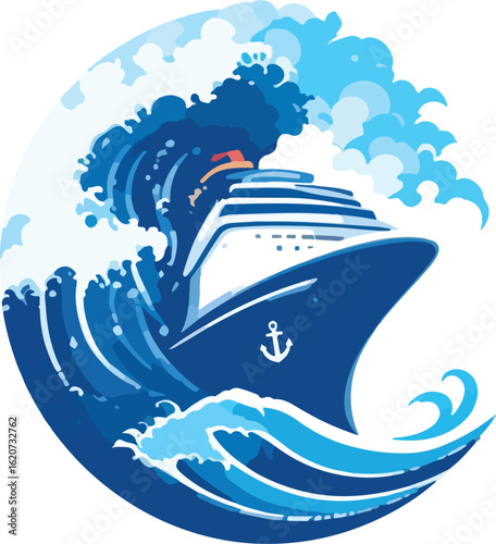 Парусный корабль, плывущий по морской воде, векторная иллюстрация в стиле бумажного художественного ремесла. Красивая морская композиция с парусником и штормовыми волнами. Концепция морских путешествий и приключений.