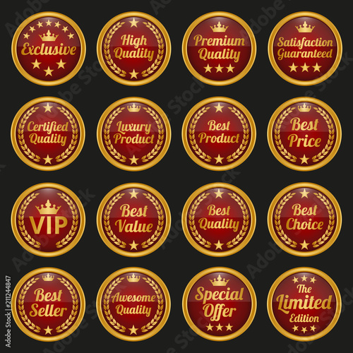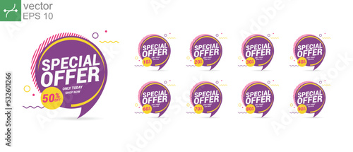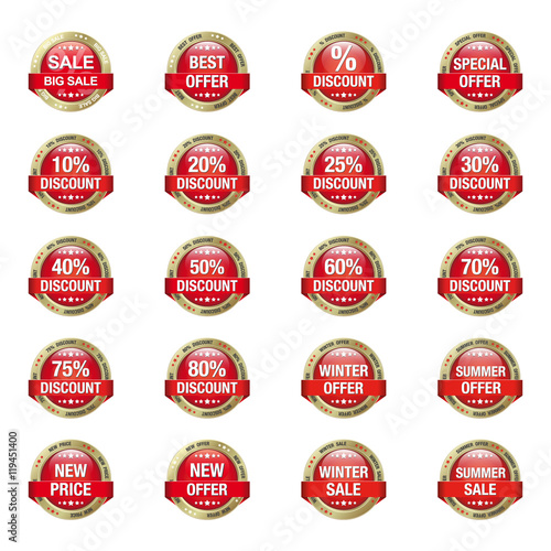Распродажа, лучшие и специальные предложения глянцевых круглых значков, бирк, этикеток, наклеек, векторных изолированных иллюстраций. Реалистичные блестящие рекламные баннеры, вывески.