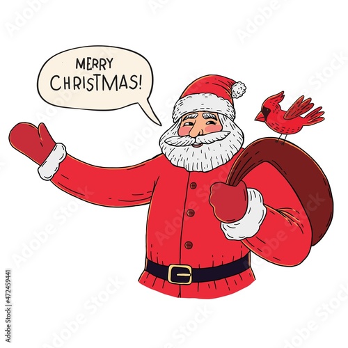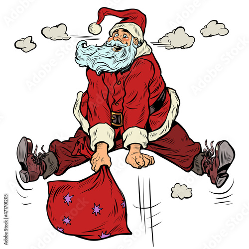 Векторная иллюстрация Санта-Клауса в стиле комического поп-арта. Концептуальный плакат с праздником Счастливого Рождества и поздравительная открытка.