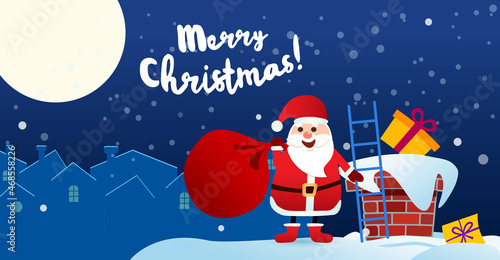 Векторная иллюстрация Санта-Клауса в стиле комического поп-арта. Концептуальный плакат с праздником Счастливого Рождества и поздравительная открытка.