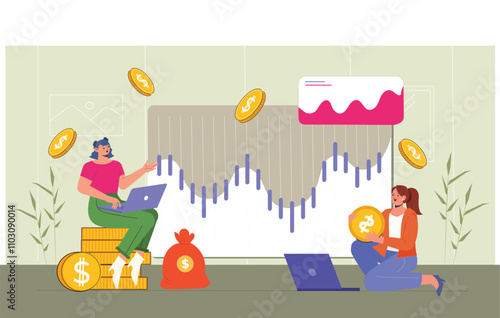 Крошечные люди кладут большую долларовую монету и банкноту в огромный кошелек, векторная иллюстрация. Концепция экономии денег, заработка и зарабатывания денег для веб-баннера, страницы веб-сайта и т.д.