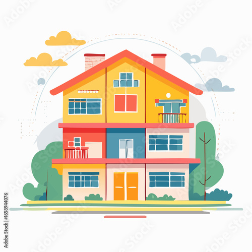 Экономия с векторной иллюстрацией концепции умного дома. Долларовые монеты падают из здания дома в человеческую руку. Элемент дизайна в плоском стиле для шаблона веб-сайта, плаката, баннера и т.д.