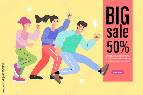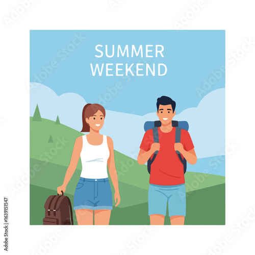 Векторная иллюстрация молодого мужчины и женщины, бегающих трусцой в парке. Элемент дизайна в плоском стиле Scamper concept.