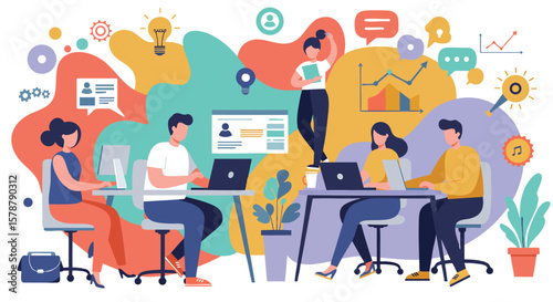 Векторная иллюстрация комедийного шоу Scandup с женщиной-комиком, рассказывающей шутки в микрофон, выступающей на сцене перед аудиторией