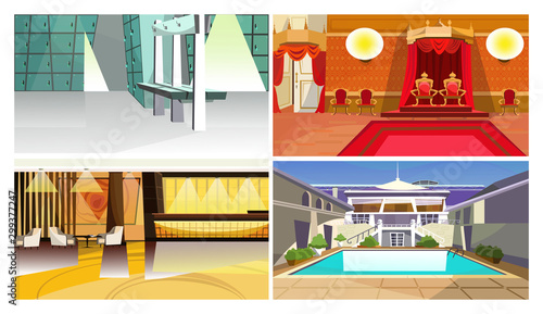 Разбросанная одежда, женские вещи в гардеробе, в книжном шкафу, на диване, на кровати, плоская векторная изолированная иллюстрация. Беспорядок, неразбериха.