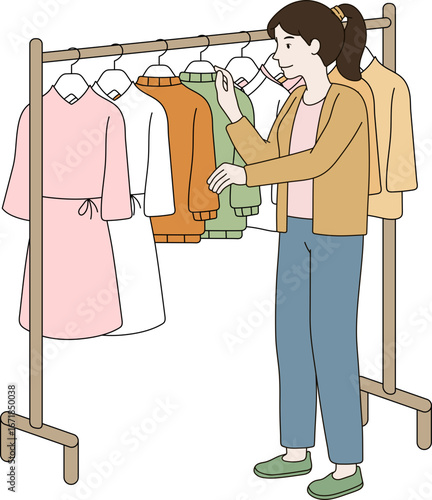 Разбросанная одежда на офисном стуле векторная иконка, изолированная на белом фоне