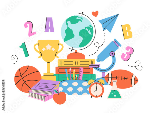 Векторный фон, вырезанный из школьной осенней бумаги. Изучайте запасы и осенние листья в стиле крафт-арт. Концепция "Назад в школу". Шаблон рекламного материала для продажи маркетингового продвижения