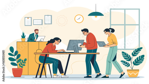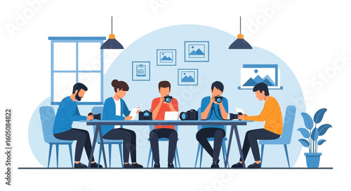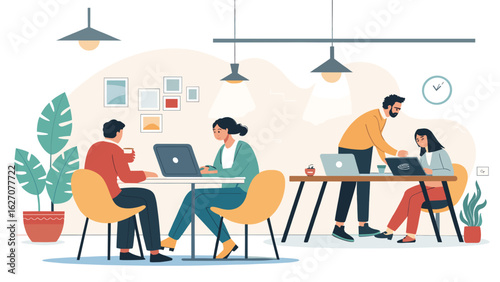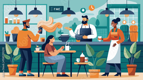 Ученики, студенты, мальчики и девочки, персонажи мультфильмов, обедающие в школьной столовой, векторная иллюстрация. Концепция обслуживания школьной столовой для веб-баннера, страницы веб-сайта и т.д.