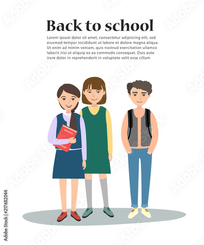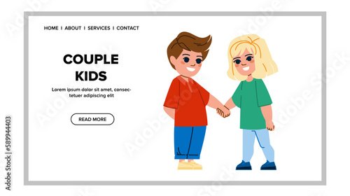 Векторная иллюстрация школьников мальчика и девочки, держащихся за руки. Элемент дизайна в плоском стиле концепции School people, значок, выделенный на белом фоне.