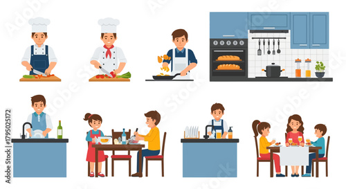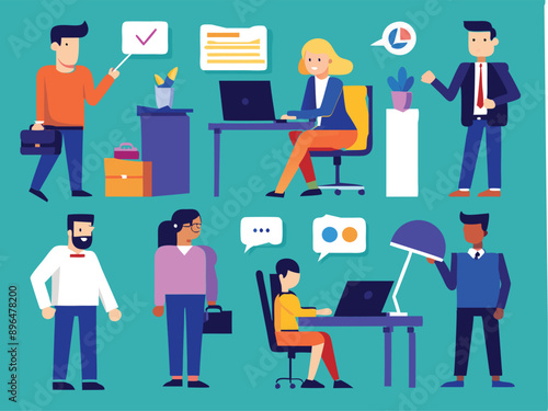 Векторная иллюстрация директора школы, учителя, повара и школьников. Символы школьных людей, значки, выделенные на белом фоне. Дизайн в плоском стиле.