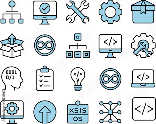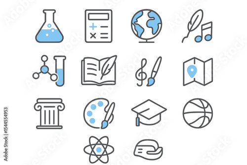 Наука и образование Плоские линейные значки. Векторная иллюстрация