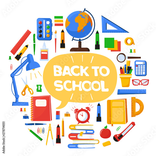 Наука для детей. Школьная символика и элементы дизайна, выделенные на белом фоне. Векторная иллюстрация.