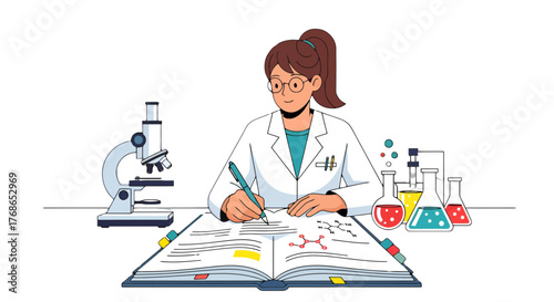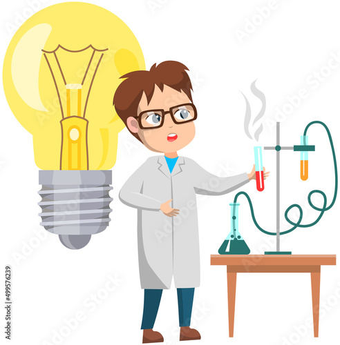 Векторная иллюстрация мужчины-химика, держащего стойку для пробирок. Концепция Science people элемент дизайна в плоском стиле, значок, выделенный на белом фоне.