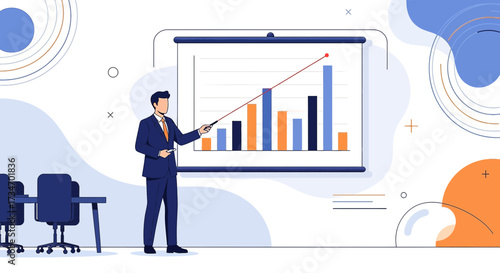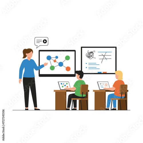 Векторная иллюстрация учителя химии, профессора университета, читающего лекцию. Концепция Science people элемент дизайна в плоском стиле, значок, выделенный на белом фоне.