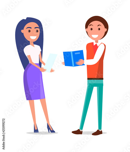 Векторная иллюстрация ученых мужчины и женщины, работающих в научной лаборатории. Концепция Science people элемент дизайна в плоском стиле, значок, выделенный на белом фоне.